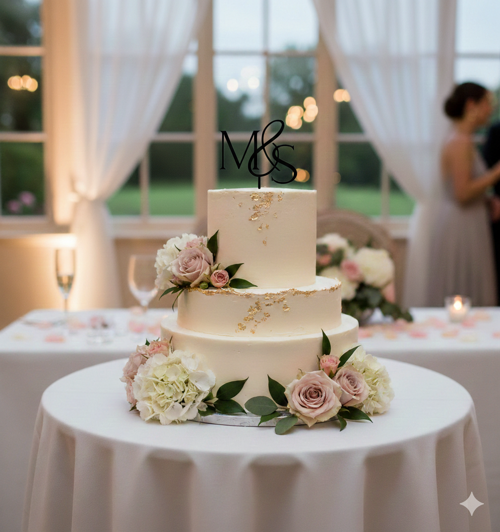 cm-es kezdőbetűkkel lézer vágott egyedi tortadísz. Több színben, az ifjú pár monogramjával rendelhető.A kért betűket megrendeléskor megjegyzésben lehet megadni.