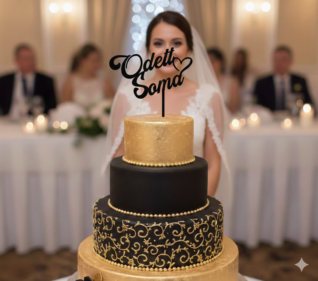 4,5 cm-es kezdőbetűvel lézer vágott egyedi feliratos torta dísz. A neveket megrendelés leadásakor  a További megjegyzések rovatban kérjük megadni.